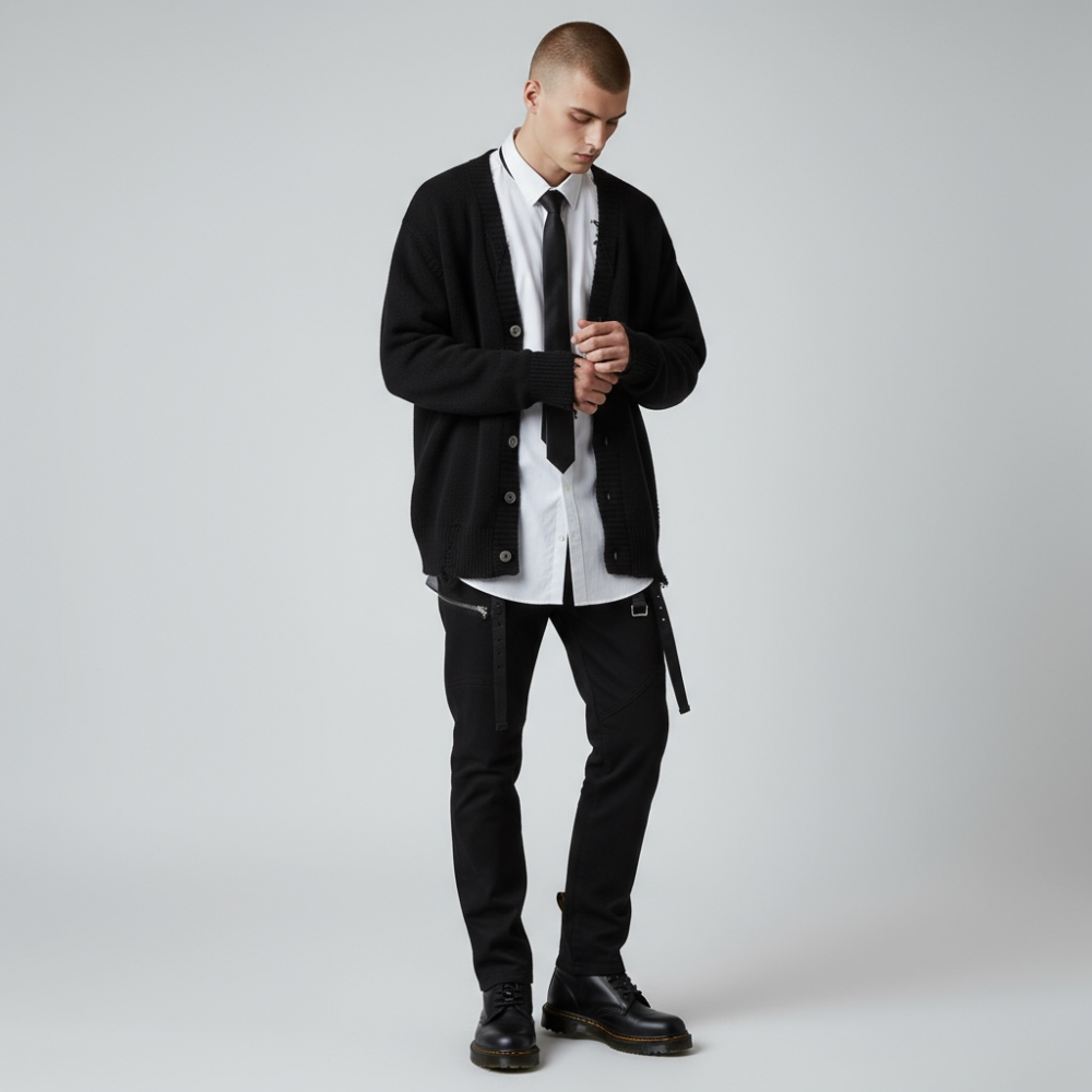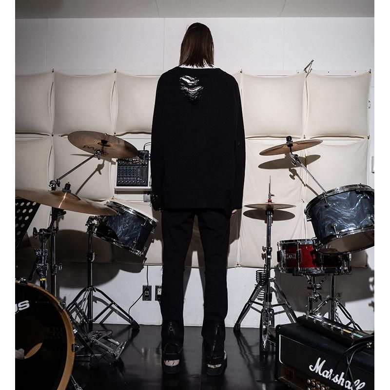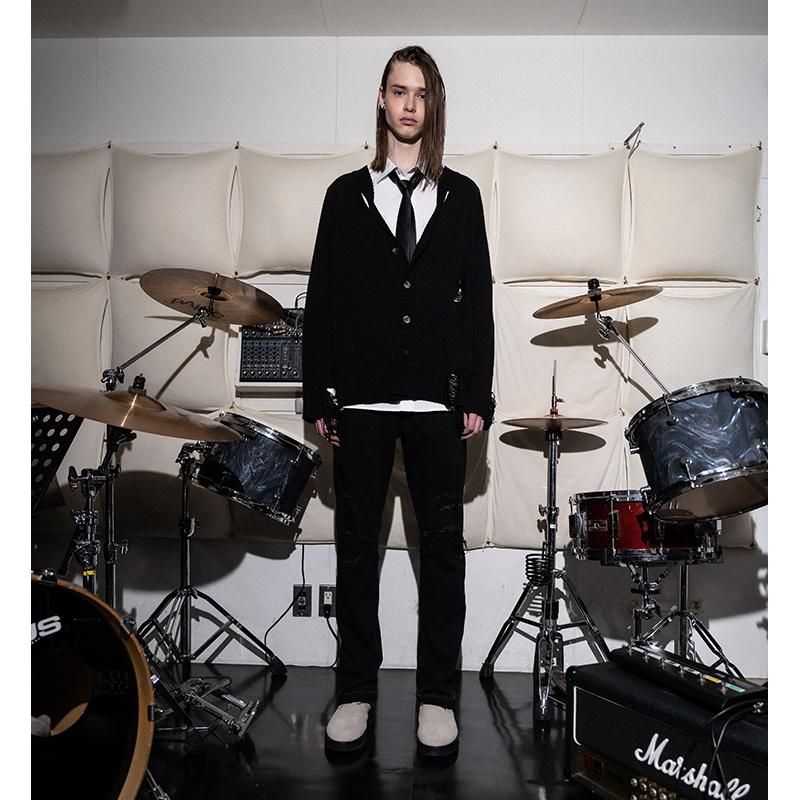 【20%OFF】a good [bad]influence(ア グッド バッド インフルエンス) / TWISTED COLLAR DISTRESSED CARDIGAN -BLACK-![]()