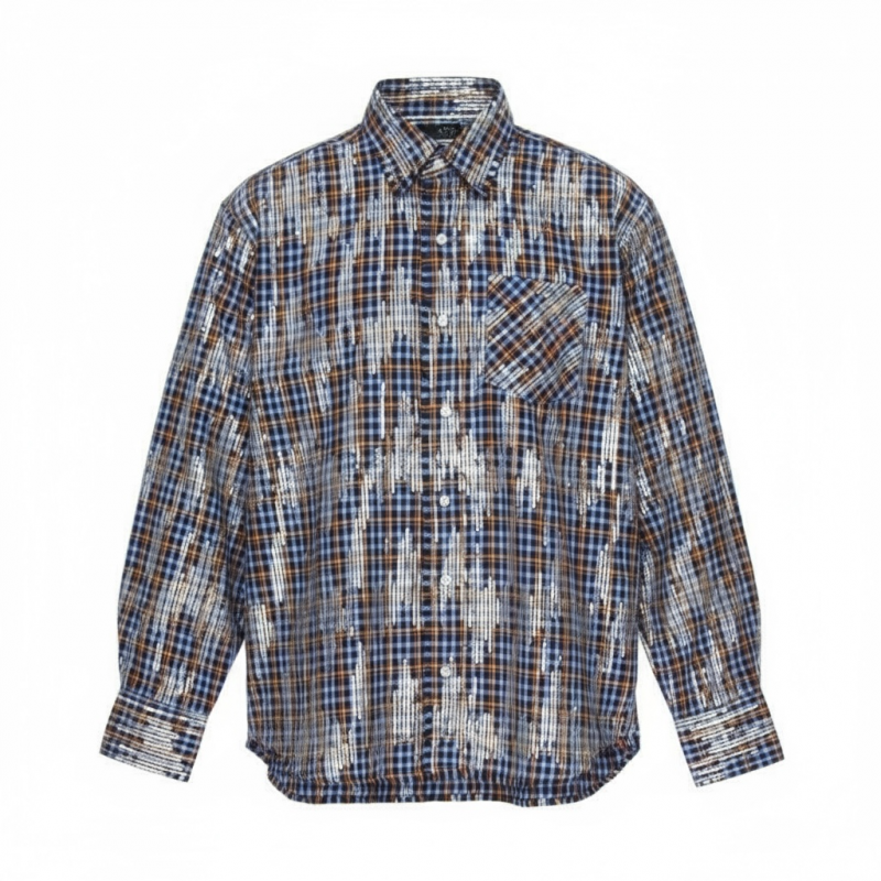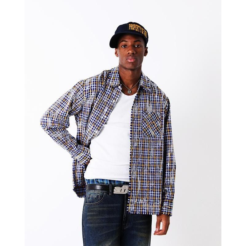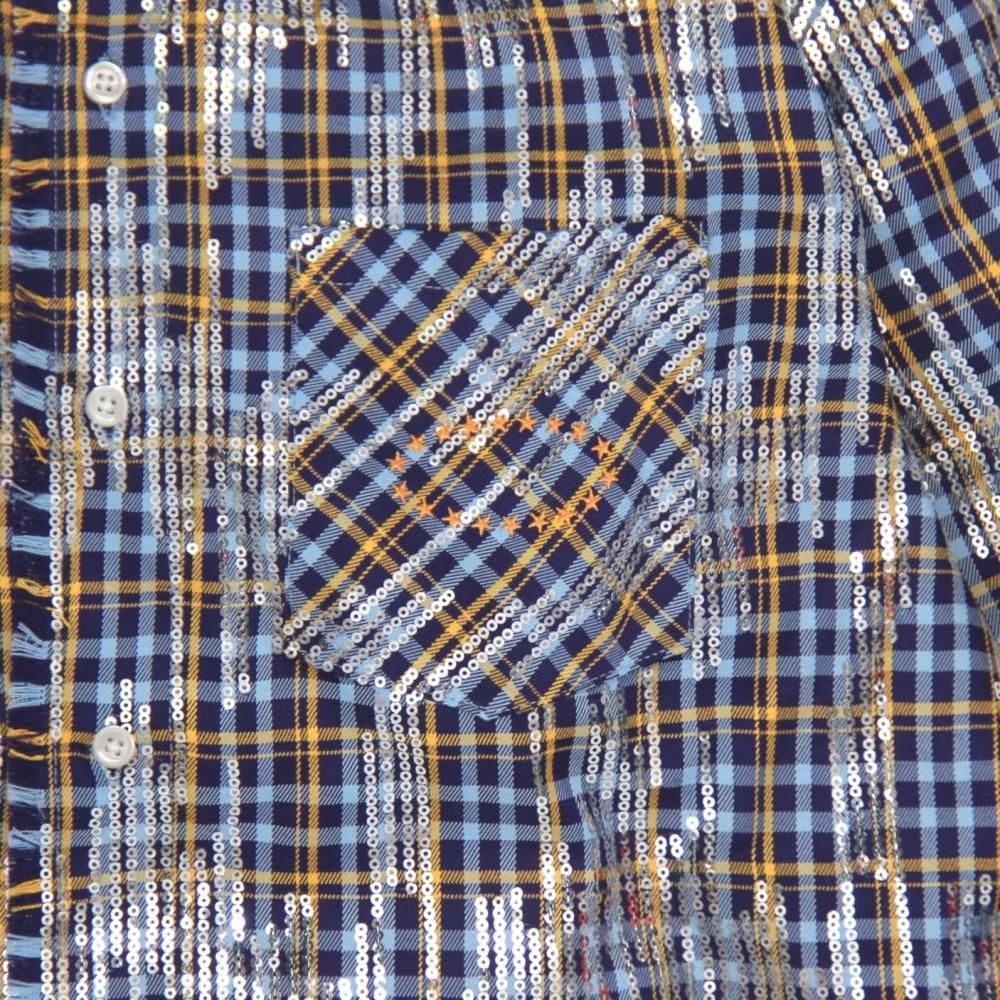 チェックシャツに一点一点丁寧にスパンコールを配しました。