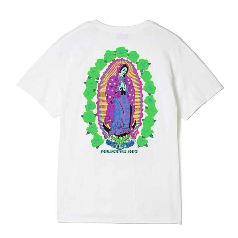 MAYOらしい、インパクトのあるマリア像のグラフィックTEE。 ネオンカラーがPOPな一枚です。