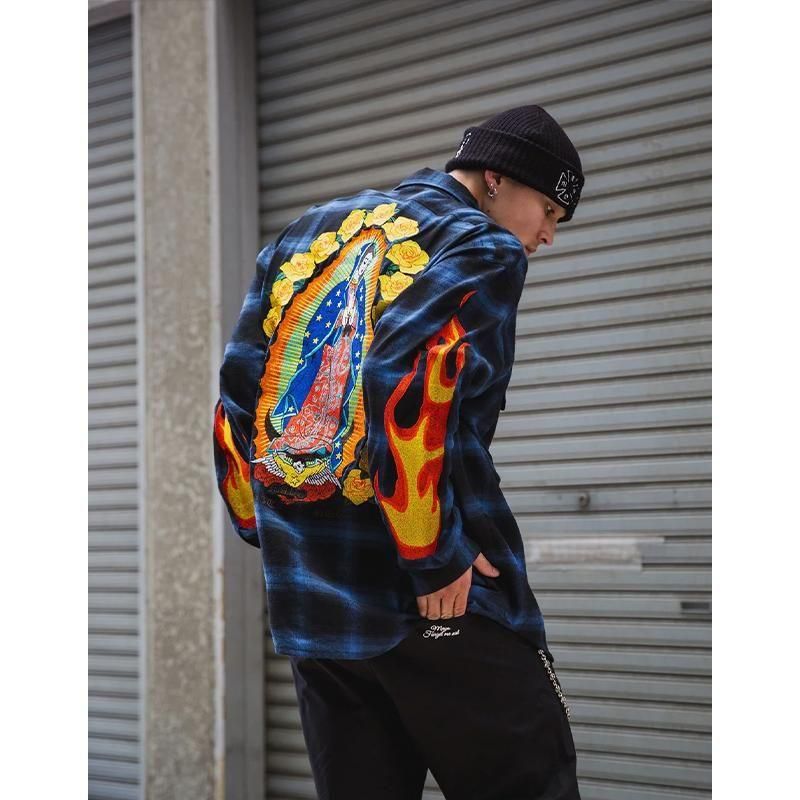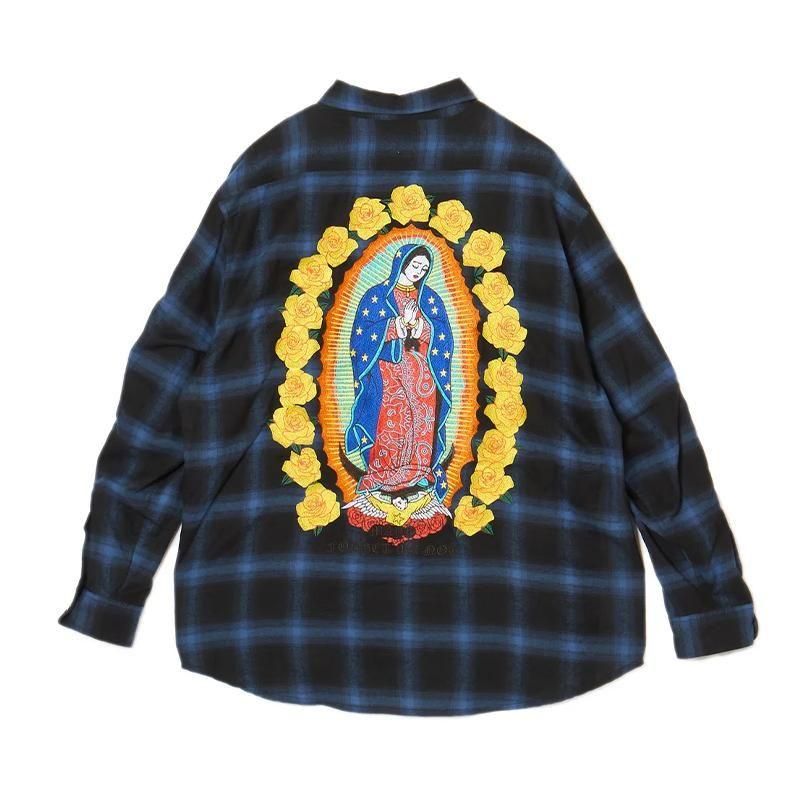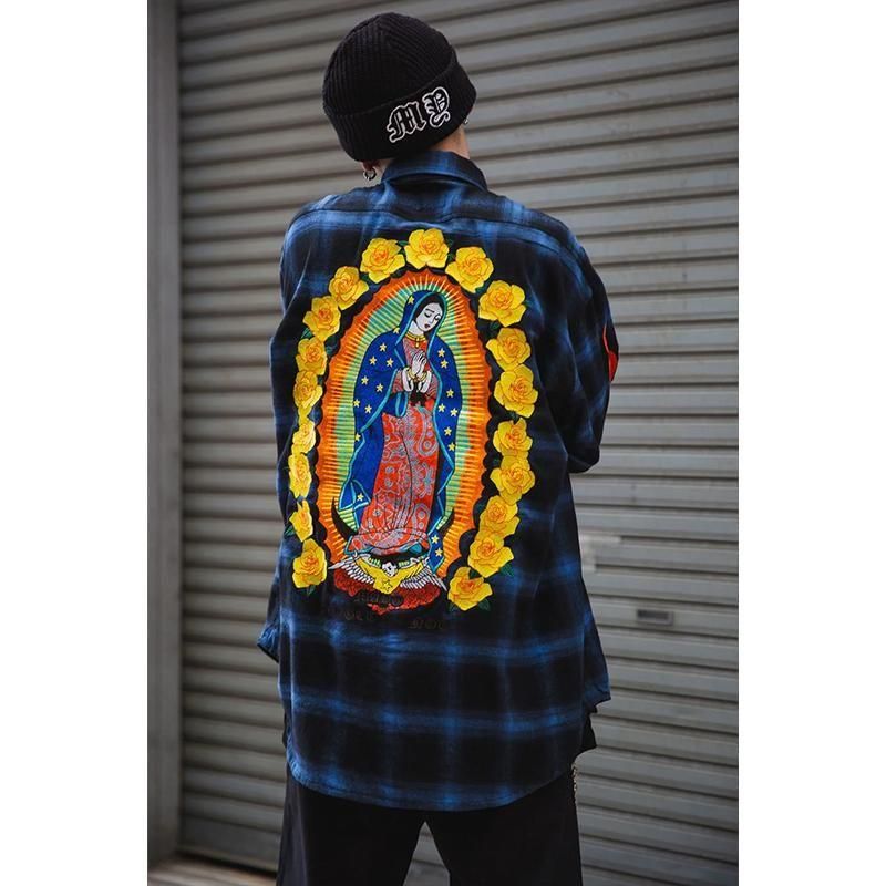 インパクトのある大きなマリアが目を引く1枚。 袖にはファイヤー刺繍が入っております。
