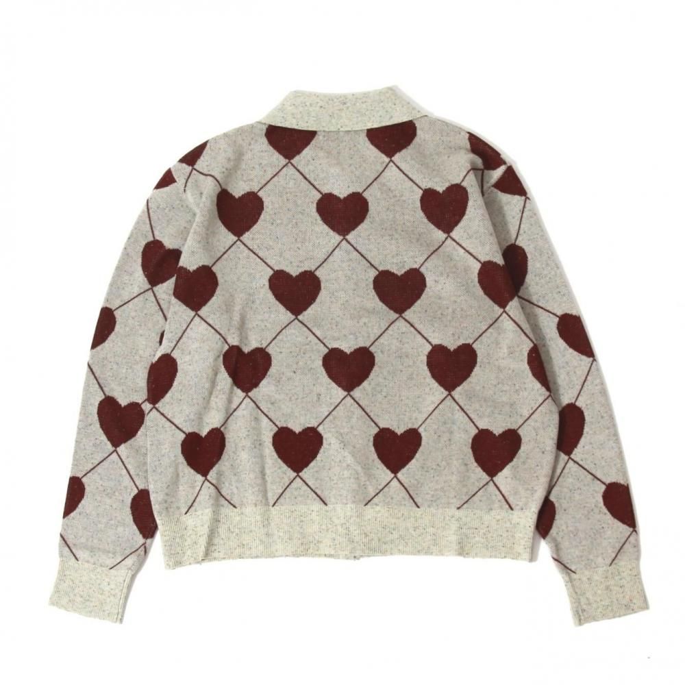 大胆なアーガイルチェックにハートを組み合わせたニットカーディガン。