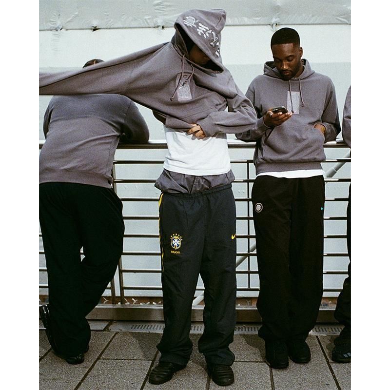 フード部にも "取扱注意" が同系色の刺繍で施される。
