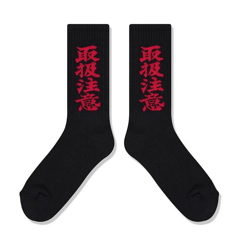 定番の "取扱注意" のグラフィックが織り込まれた新色ソックス。