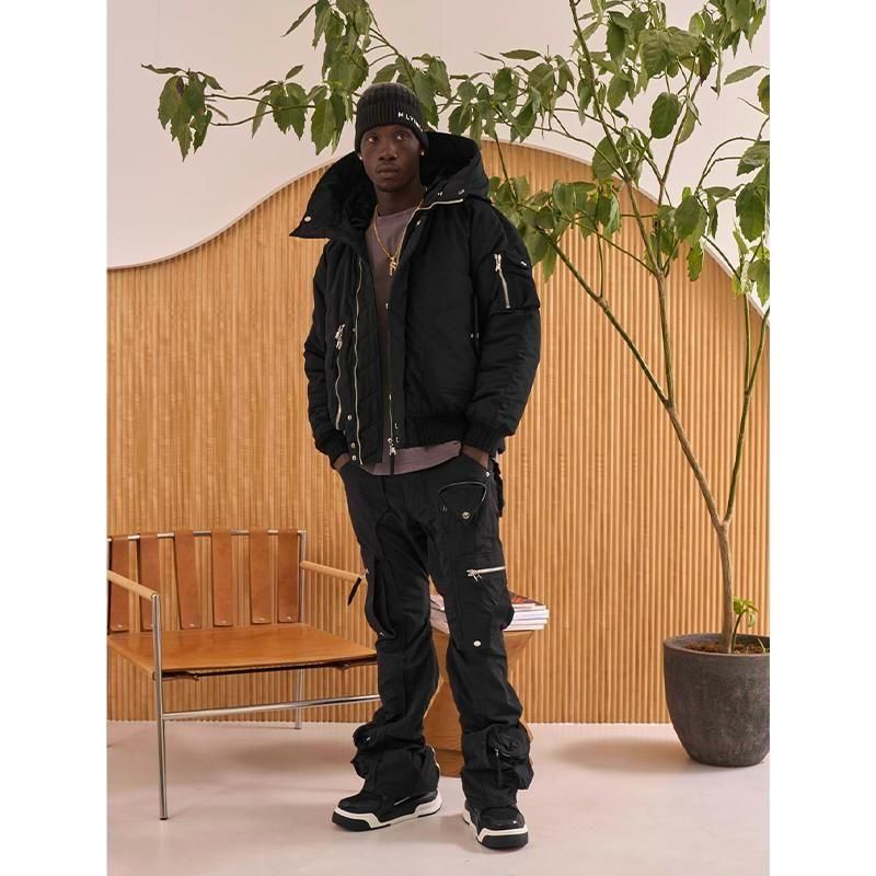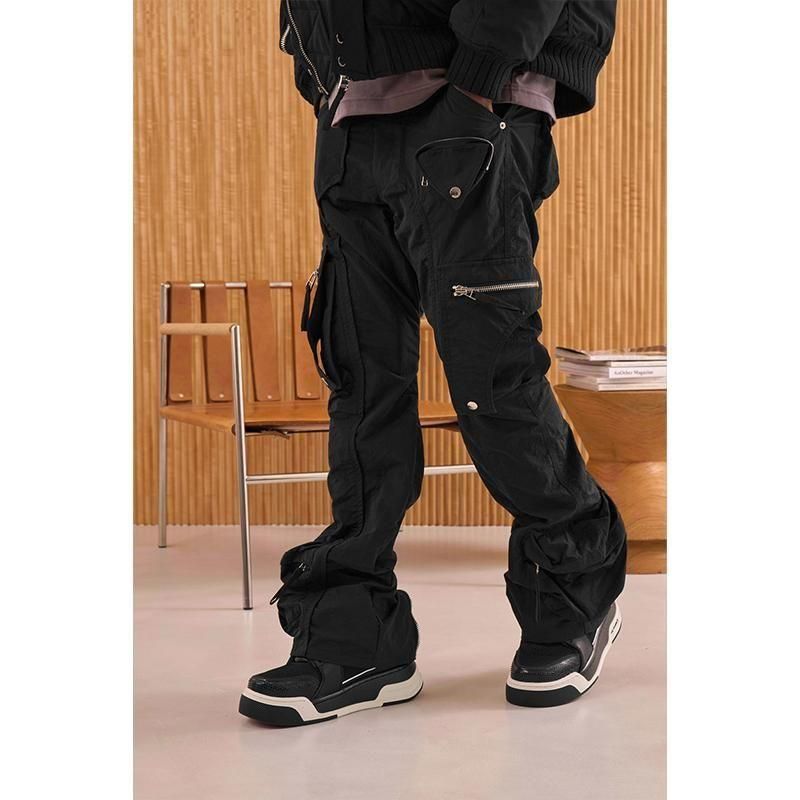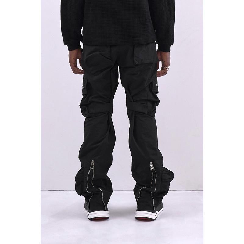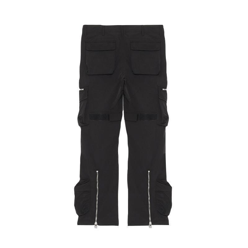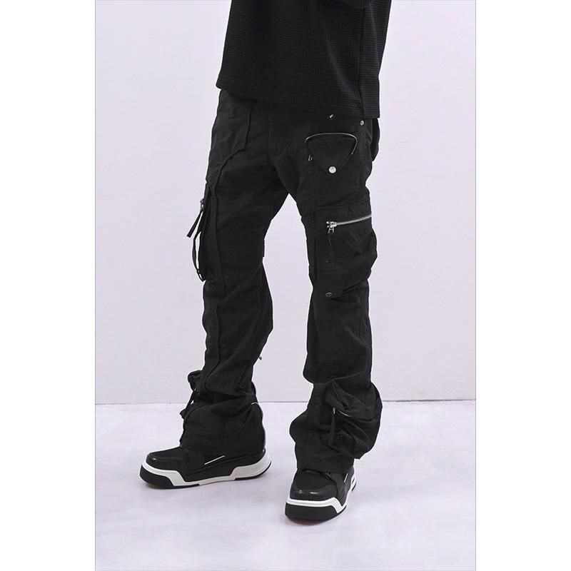 MLVINCEのパンツならではのギミックを継承しており、マジックテープによりシルエットの調節や、裾のジップによりストレートとフレアの変更が可能です。