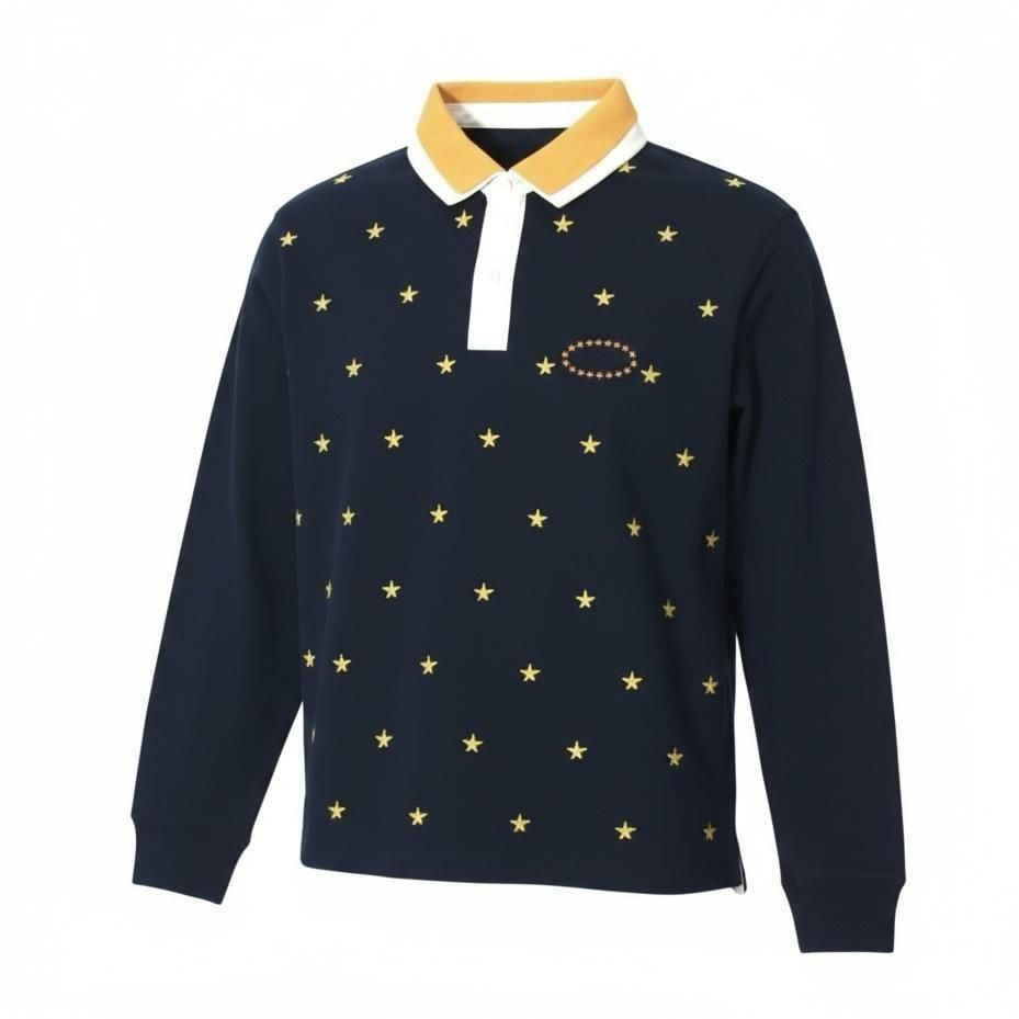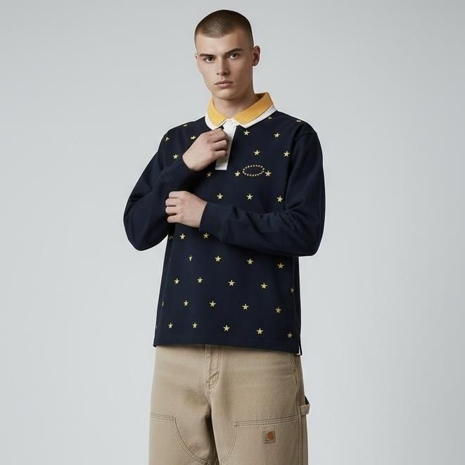 薄手のスウェット生地で仕立てた長袖ポロシャツ。