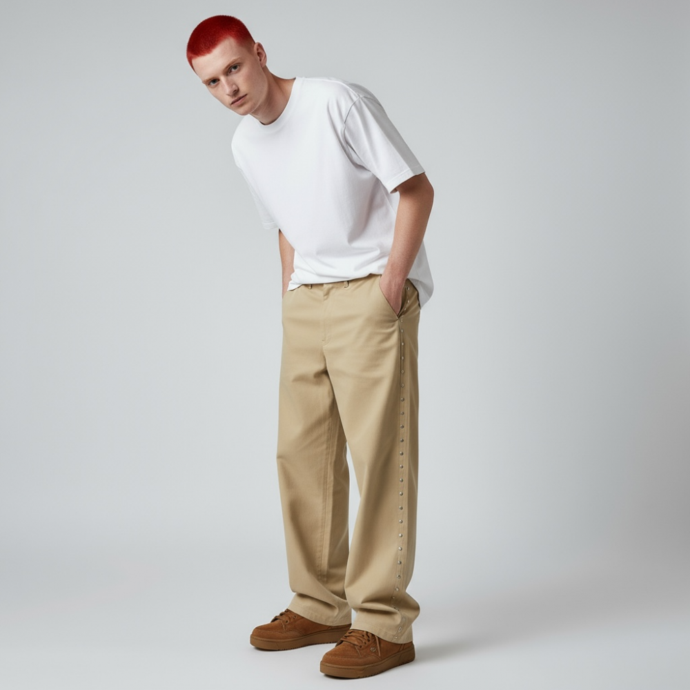 AFB(エー・エフ・ビー) / SUPER BAGGY STUDDED PANTS -KHAKI-