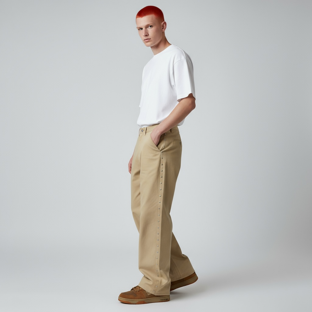 サイドに施されたスタッズとの相乗効果で他のパンツを圧倒する逸品。