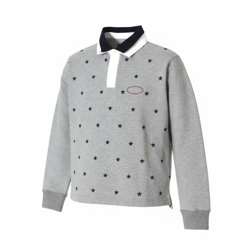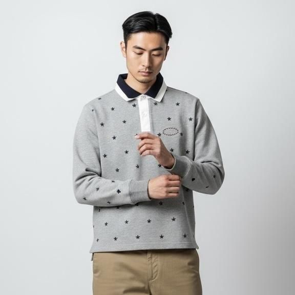 薄手のスウェット生地で仕立てた長袖ポロシャツ。