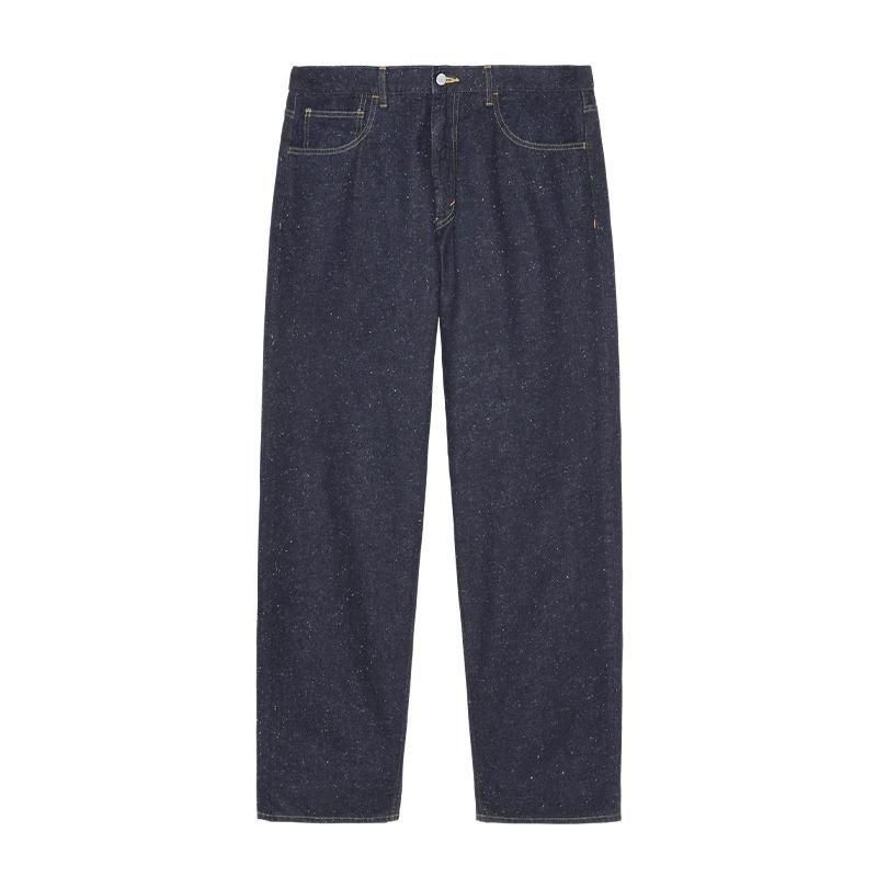 100%コットン。 12ozネップデニム生地。 ワイドテーパードシルエット。 5ポケットスタイル。 ジッパーフライ。 ウエストバンド。 バック右ウエストにレザーパ ッチ。 ウォッシュ加工。 日本製。