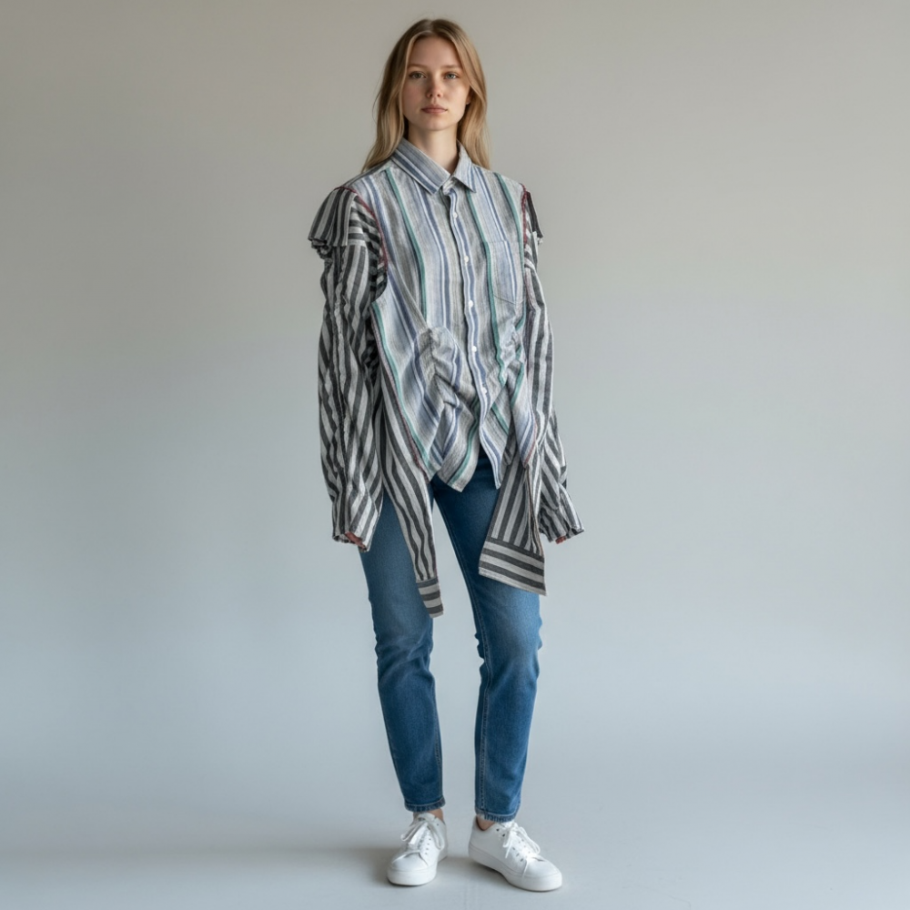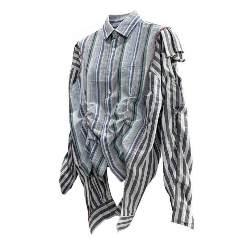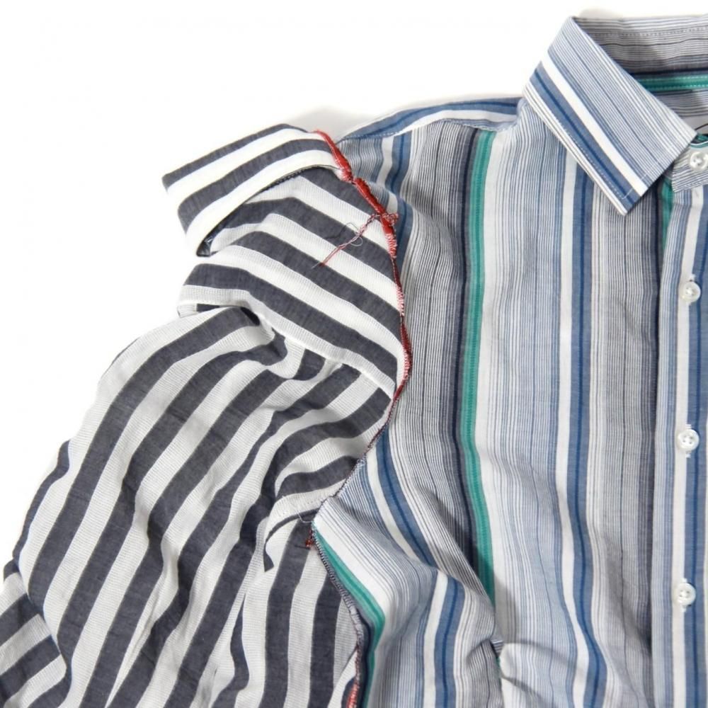 素材の持つ特徴を活かしながら再構築されたドッキングシャツです。