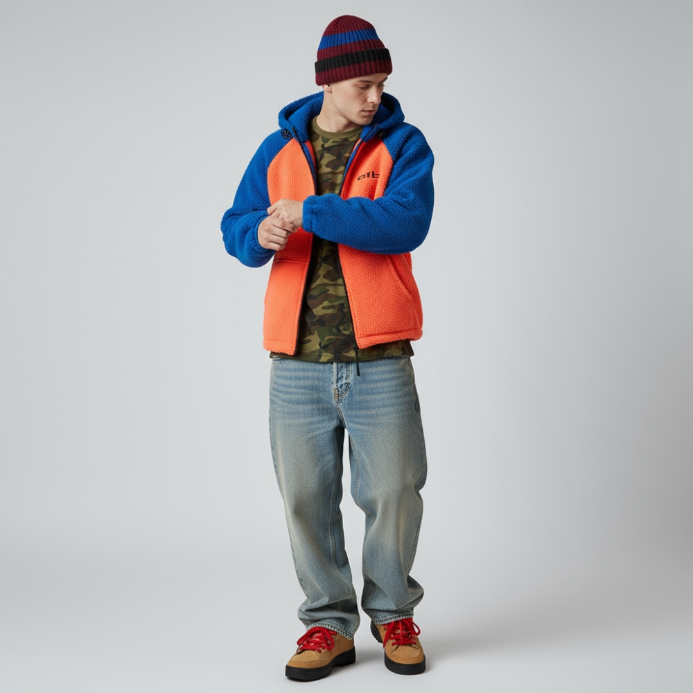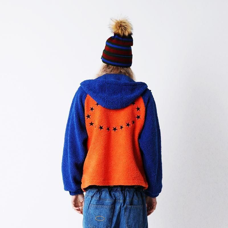 袖を切り替えたヴィヴィッドなカラーリングのボアZIP。