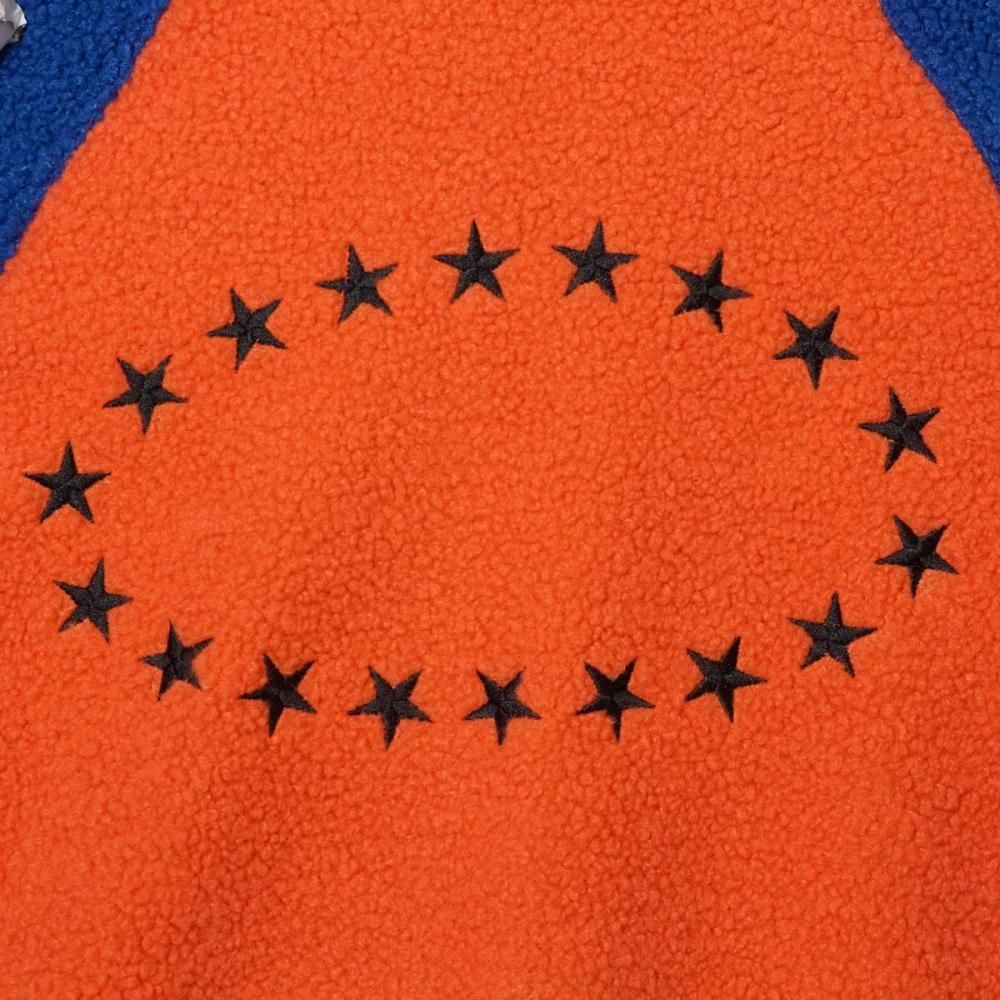 胸元と背面にロゴとブランドのシグネチャーである星が刺繍されています。
