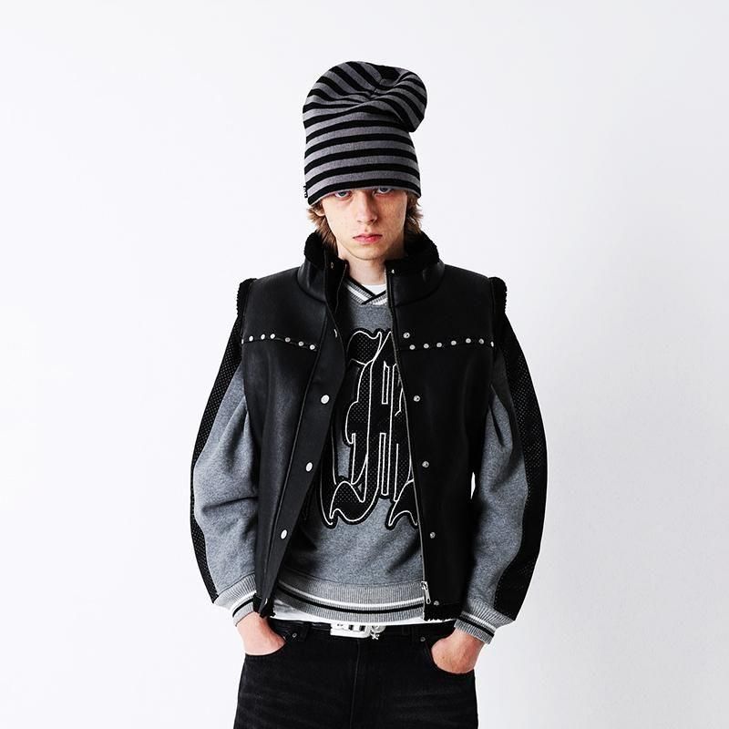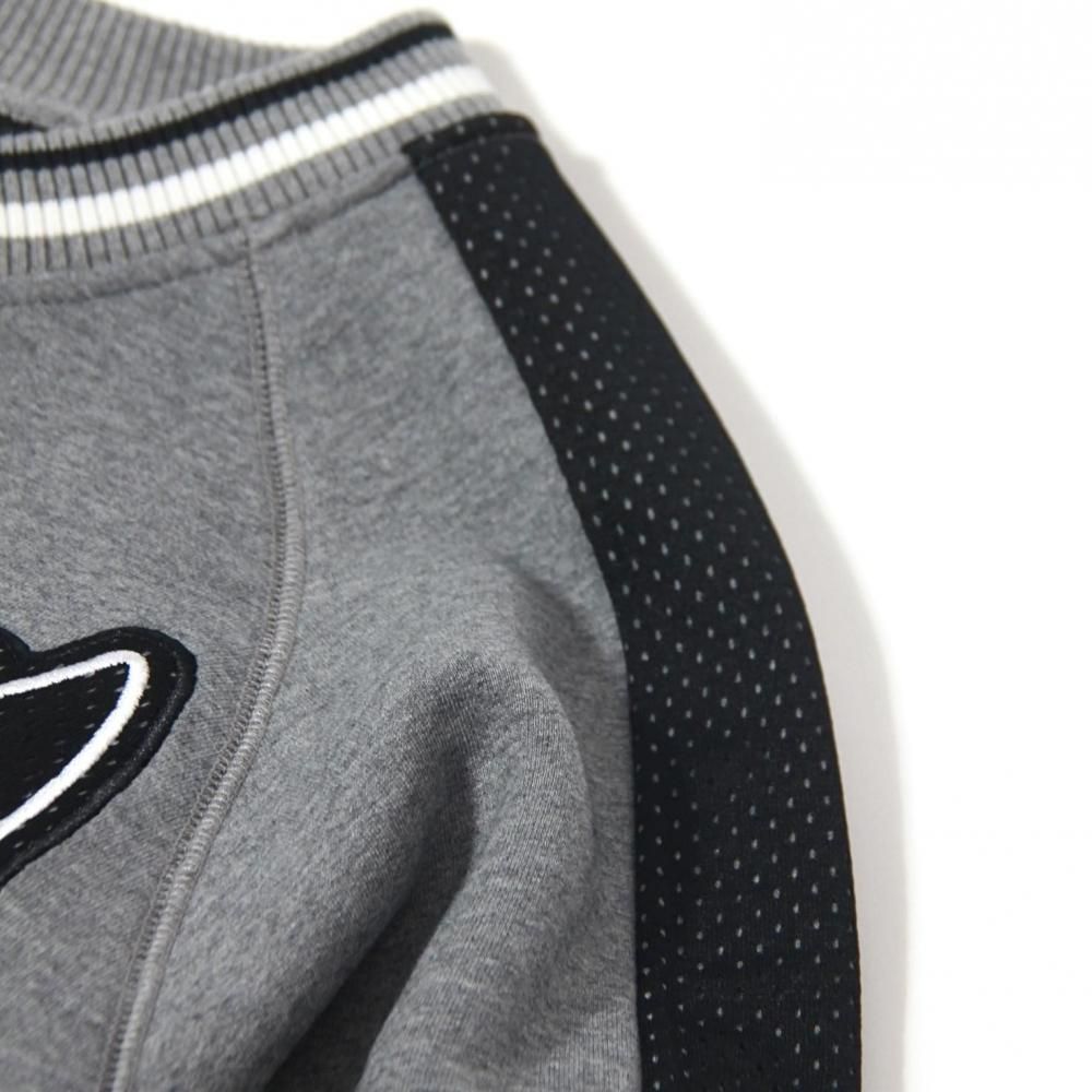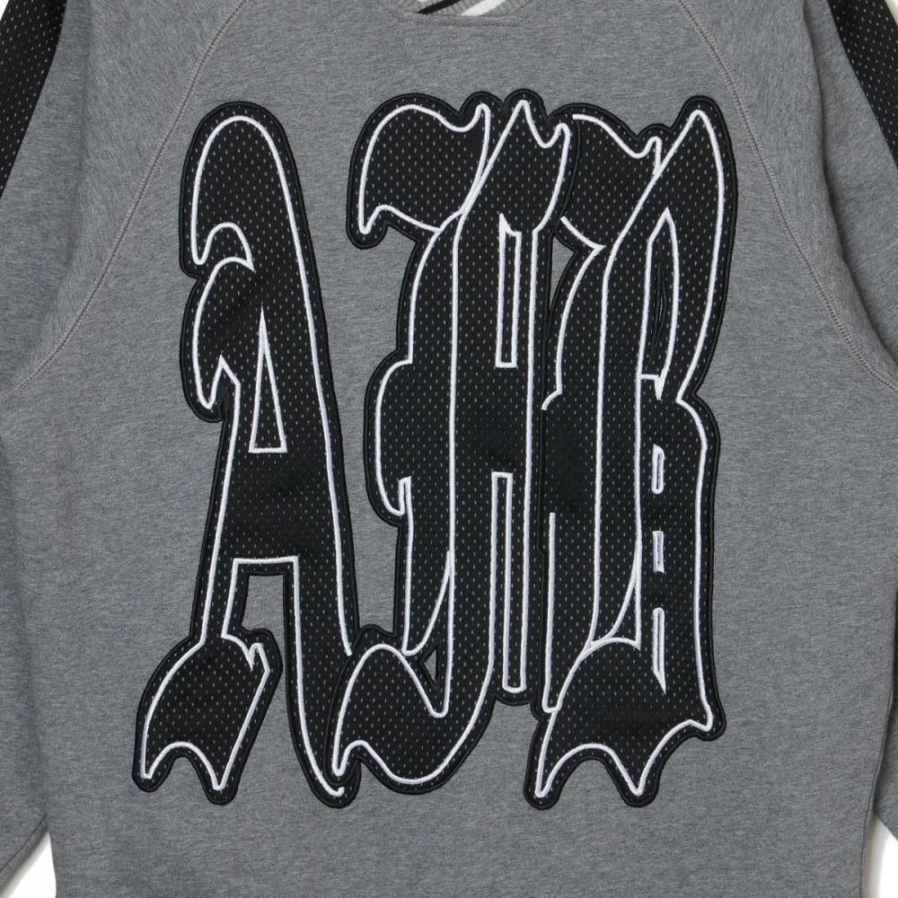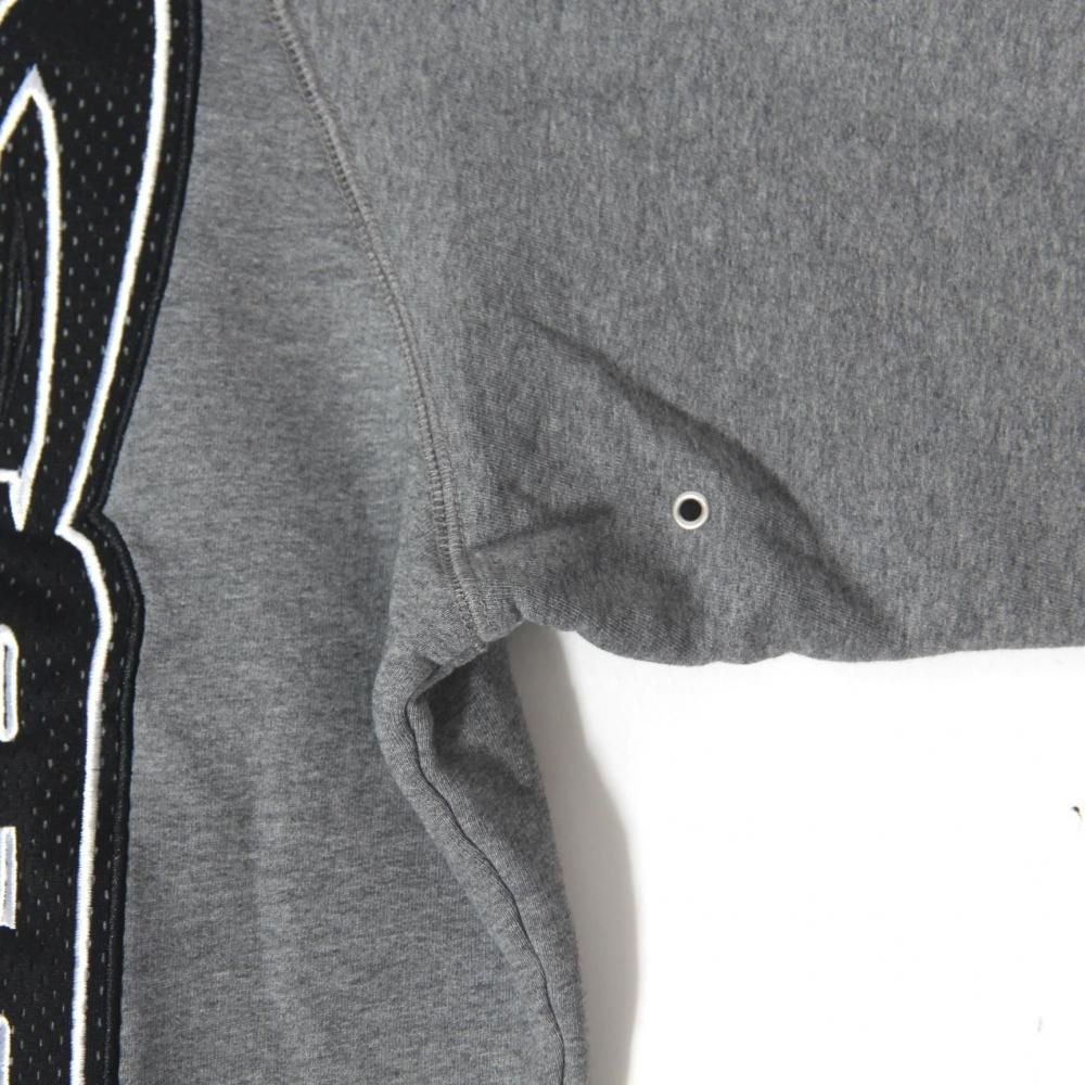 胸元に大きくイタリック体でブランド名のパッチがあしらわれたインパクト大のスウェット。