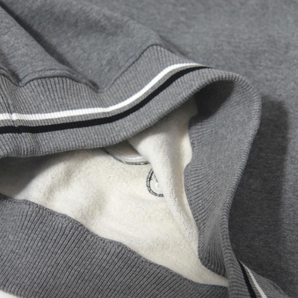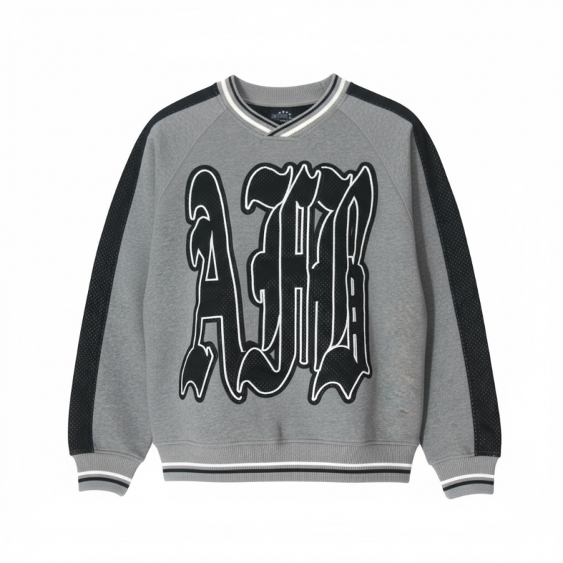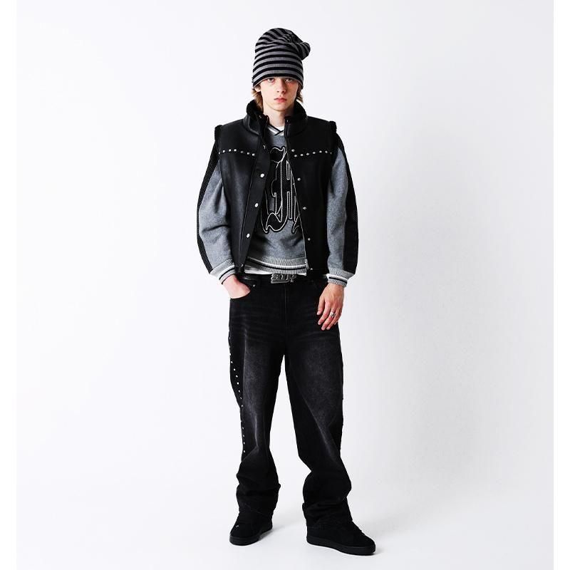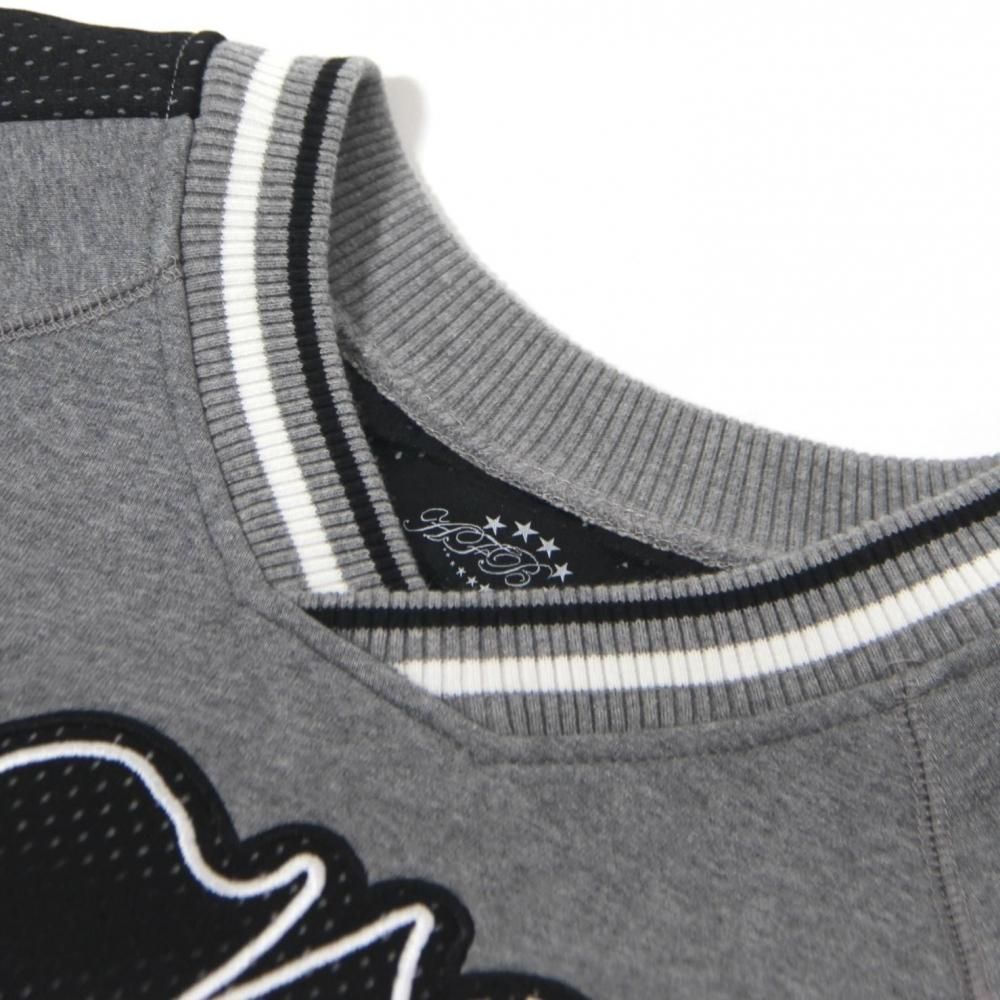 胸元に大きくイタリック体でブランド名のパッチがあしらわれたインパクト大のスウェット。