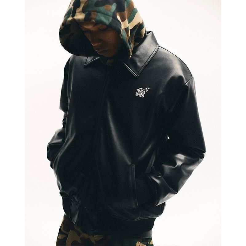 フロントには "SMALL OG LABEL" ロゴのワッペンと刺繍、背面に "OG BOY" を同色のエナメル生地で表現したPUレザー生地を使用のジャケット。
