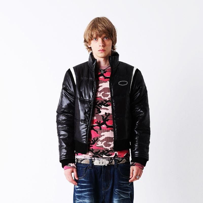 オリジナルカモ柄をプリント、袖部分をレイヤードしました。