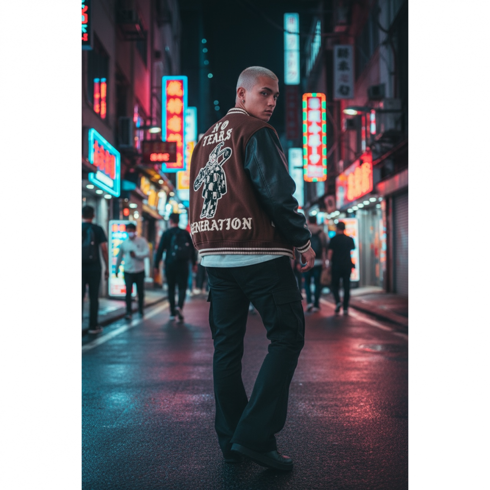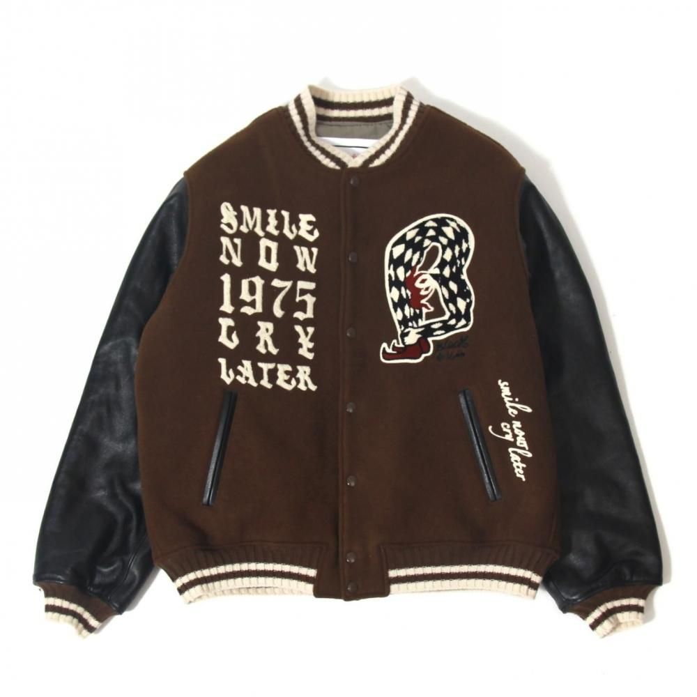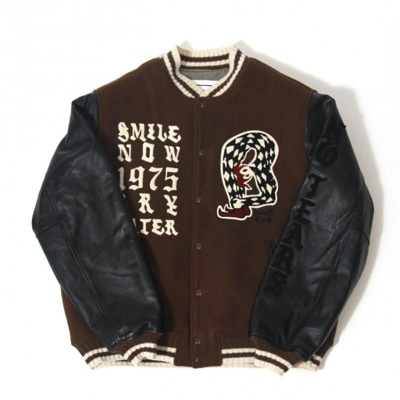 高級メルトンを使用したリアルレザーのバーシティジャケット。