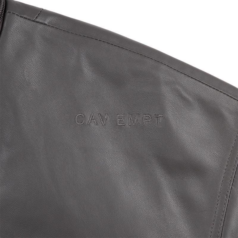 表地羊革。裏地100%ポリエステル、キルティング。 シンサレート中綿100%ポリエステル。 ジップアップ。比翼フラップ。セットインスリーブ。 前身頃ショルダーに刺繍でCAV EMPT。左袖上部にシリコンパッチ。前身頃にベローズポケット、シームポケット。 前身頃裏にウェルトポケット。前身頃、後ろ身頃で生地切り替え。 着脱式フード。フード、裾にドローストリング。