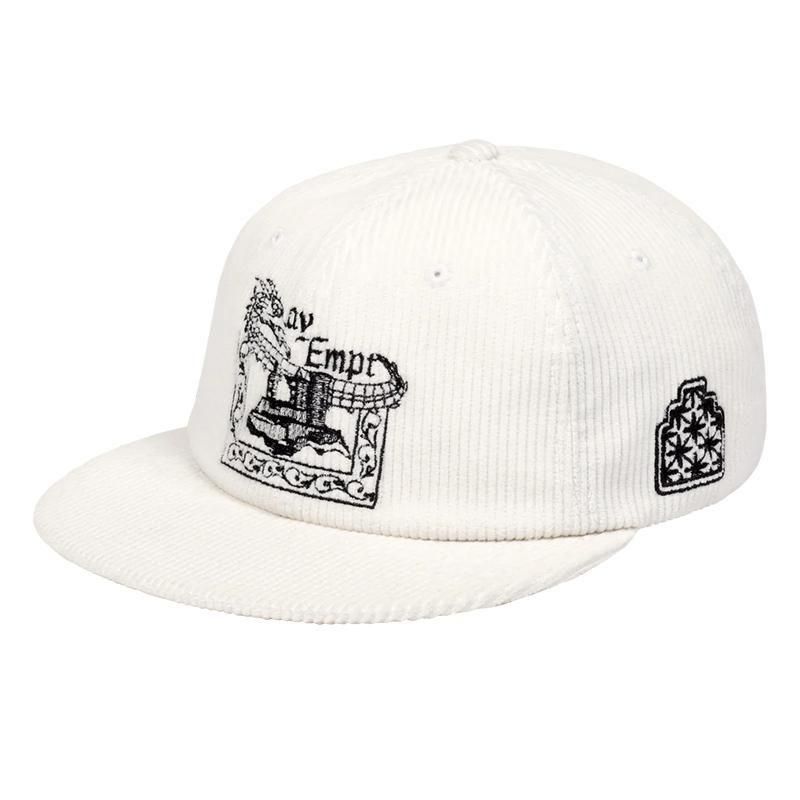 100%コットン。コーデュロイ生地。 6パネル。ストラップバック。フロント、サイドに刺繍でグラフィック。天ボタン。 アイレット。