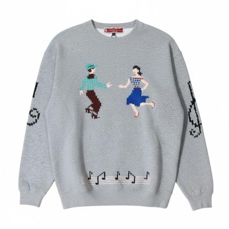ダンスをする男女のモチーフが印象的な50〜60年代頃のカルチャーをプリントしたクルーネック。